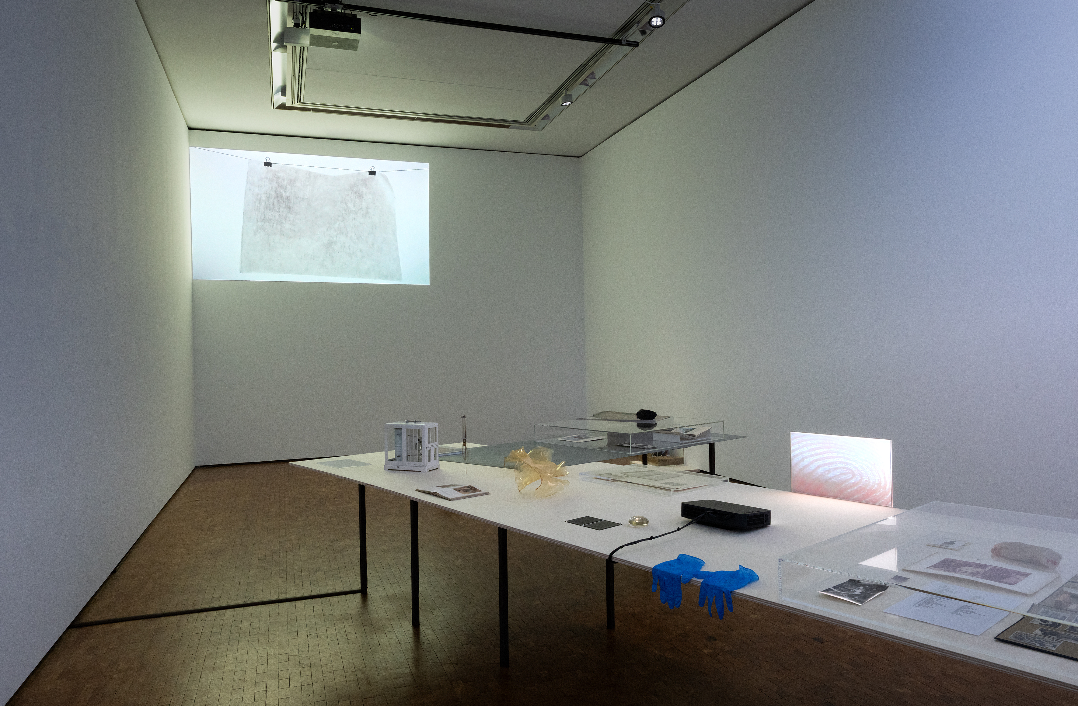 M’barek’s immersive work at Museum Ludwig weaves together photographs of the Agfa-production, toxic documents, and microscopic material analyses with her exploration of the museum’s biotope, creating a speculative multimedia experience. Through dazzling light phenomena, shimmering microstructures, ticking measuring instruments and crawling insects, she creates a space shaped by the tension between preservation and decay, order and entropy. The installation approaches an elusive visuality that repeatedly slips away and remains precarious.