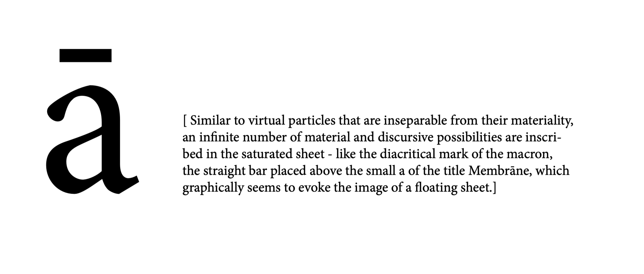 The figure of the sheet as a membrane represents the permeability and porosity of the process of artistic research with its manifold interdependences between resilient research object, technical device and perceptive human body.